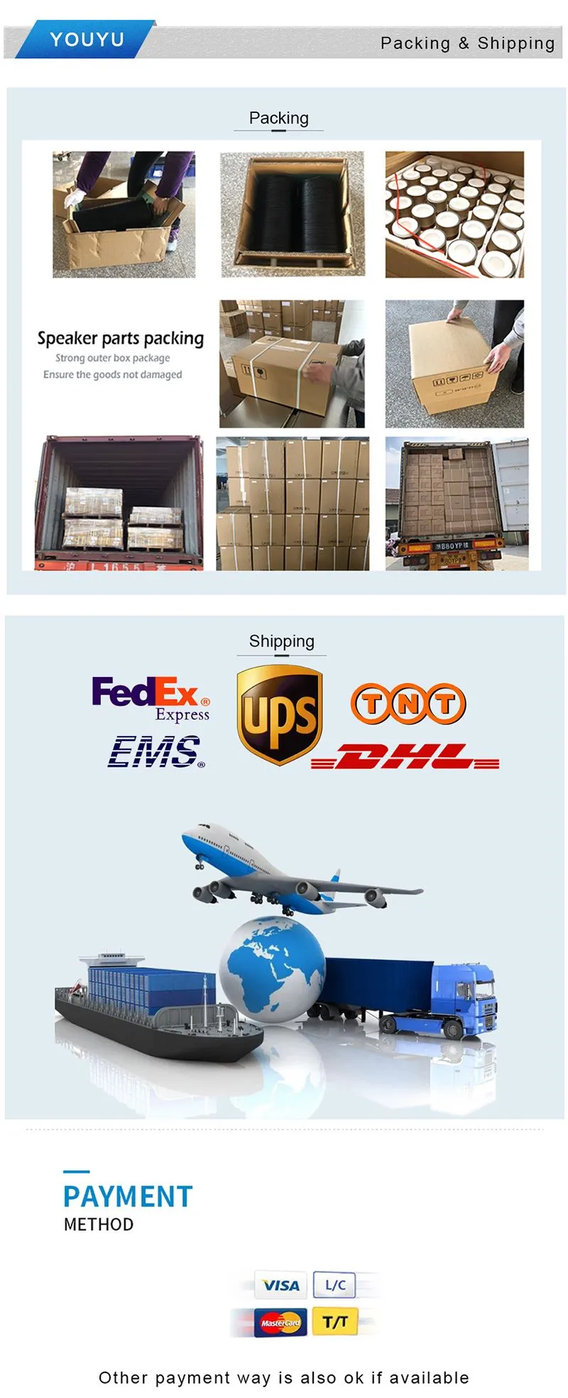 Payment methods: T/T, L/C, MoneyGram, PayPal, Western Union;